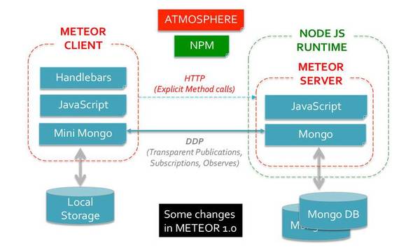 Meteor(version:1.0)的另一个特点是它通过在手机内部存储器中实现其miniMongo数据库来维护数据的本地副本。此外,所有的电话到服务器数据通信和同步由Meteor提供。(miniMongo是MongoDB API的Java实现。)下面是架构: